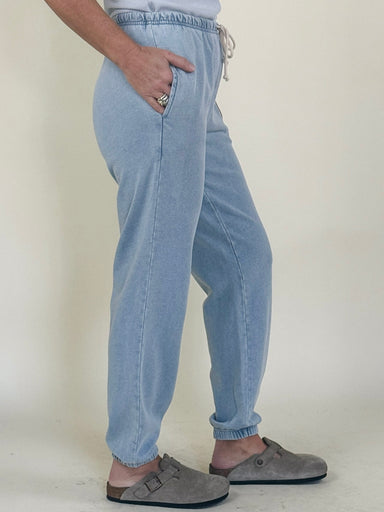 These joggers blend the look of denim with the softness of French terry for all-day wearability. The drawstring waist, side pockets, and tapered le...