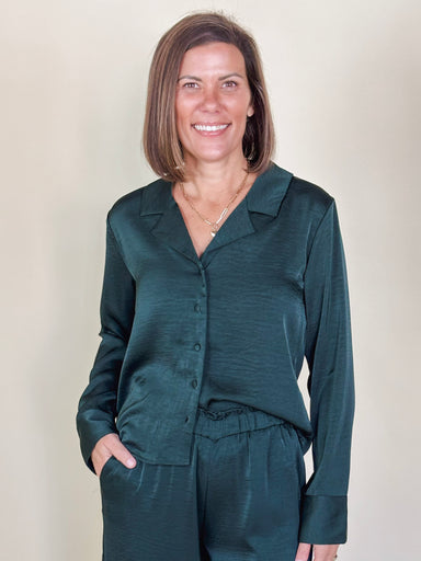 Soft luxe satin gives this classic top a modern refresh. Offering a relaxed fit with a collared neckline and button-front design, its fluid drape a...