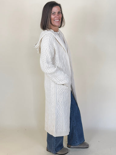 The perfect cardigan for sitting by the fireplace with a cup of hot cocoa in your hands. Its extra long length and hooded design will keep you warm...