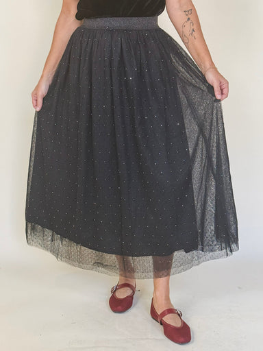 When you want a look that stands out, the Lily Skirt will do the trick. Mini gemstones throughout this midi-length tulle skirt and a glittered wais...