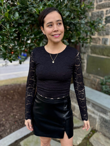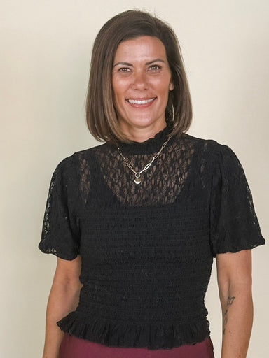 Soft lace and mesh lined puff sleeves meet a smocked bodice for a figure-flattering fit with just the right amount of stretch. Finished with a subt...