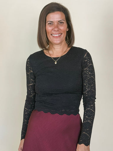 Delicate lace and scalloped details make this top your next special occasion favorite. Crafted from stretch floral lace, this fitted top features l...