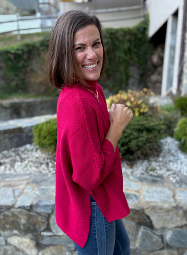 Elevate your wardrobe with the Boho Sweater, featuring a chic mock neck and 3/4 sleeves finished with elegant round-edged cuffs. Ribbed accents and...