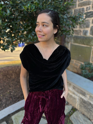 Velvet is the answer to all your styling needs every holiday season. This velvet beauty in a solid color features a cowl neckline and short sleeves...