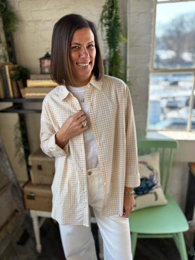 Classic meets cool in this gingham button up. Made from poplin fabric, it instantly refines any look. Whether it's worn open and layered or just by...