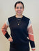 This pullover features a classic crew neck and relaxed fit. The brightly-patterned sleeves are pops of color against its solid-colored bodice. Perfect for creating a casual ensemble with a retro feel.