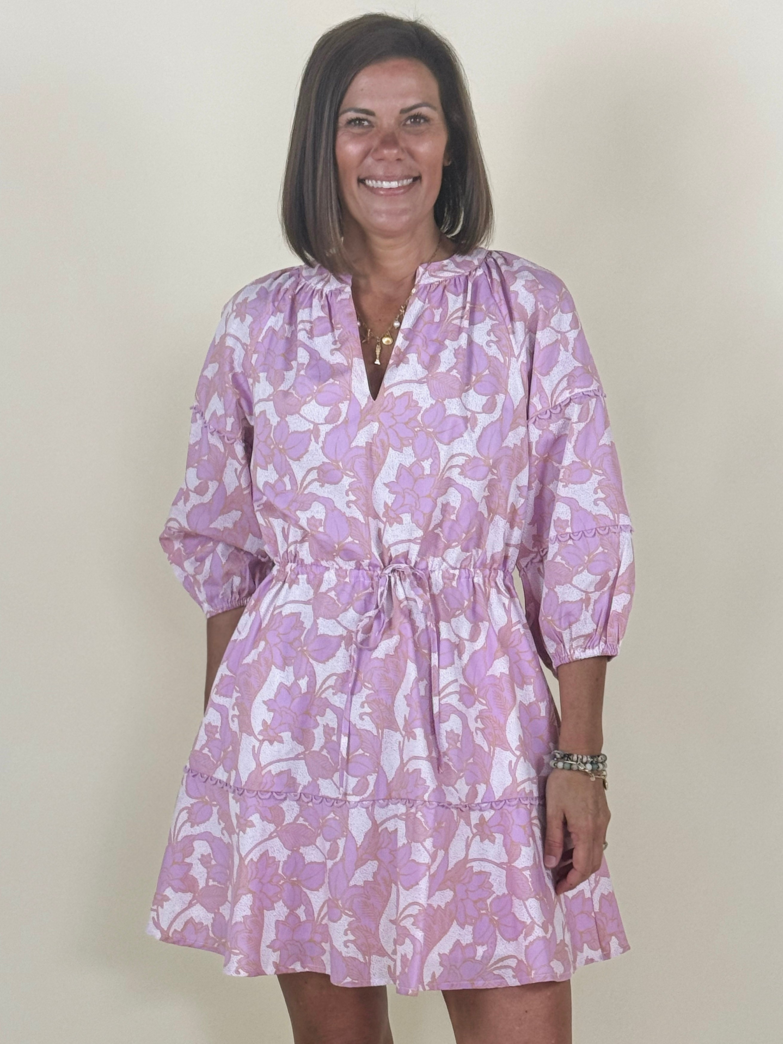 Say hello to the dress that makes every day feel like a sunny day! It features a split neckline framed by balloon sleeves, delicate lace trim detailing, and convenient side pockets. A drawstring waist offers an adjustable fit, so you'll always be comfortable. Pair with sandals or heels for an effortlessly cute, sophisticated day or night look.