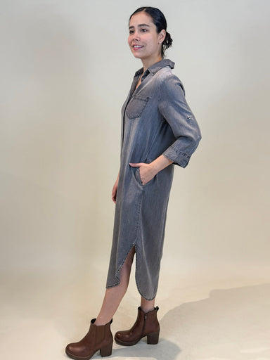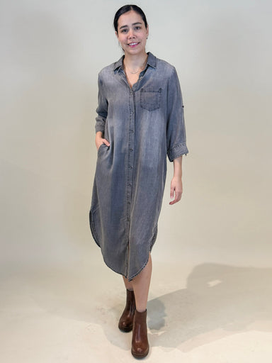 Sienna Roll Tab Sleeve Denim Shirt Dress