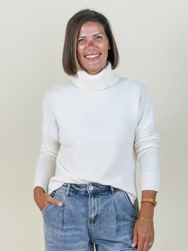 Elevate your wardrobe with the Boho Sweater, featuring a chic mock neck and 3/4 sleeves finished with elegant round-edged cuffs. Ribbed accents and...