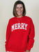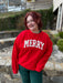 A standout holiday layer with cozy fleece and textured detail, this oversized sweatshirt delivers warmth and softness from the first wear. A statement “Merry” graphic in boucle applique gives it a festive finish, designed to stand out in your seasonal rotation.