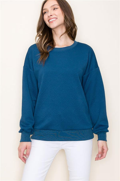Say hello to style in this versatile sweater! The wide neckline, vertical piping, hi-low hem, and slouchy fit give it an ultra-casual feel, all whi...
