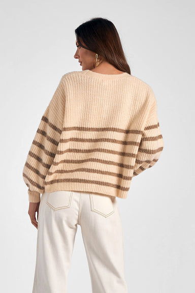 Not only does this sweater have a multicolor striped pattern, it also features allover cable knit design. With a collared v-neckline and slightly c...