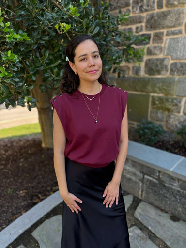 The Francesca Top features a refined round neckline and sleeveless design, enhancing elegance and comfort. Subtle metal button accents on the shoul...