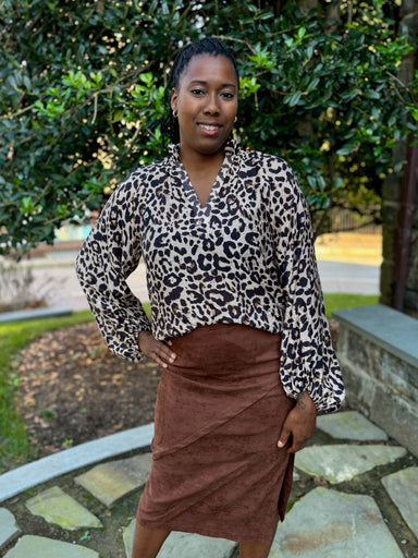 Make a bold, chic statement in the Chelsea Top, featuring an allover cheetah print. Perfect for effortless style with a wild touch! The neckline ru...