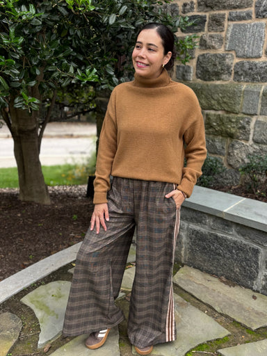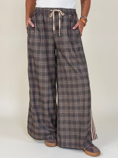 The Wilma Pants are perfect for the fall season with their plaid print in brown hues. An elastic drawstring waistband and extra wide legs add casua...