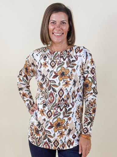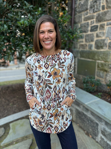 This shirt brings effortless chic to your fall wardrobe. Featuring a floral batik print, it adds a distinctive touch to any look. The twisted front...