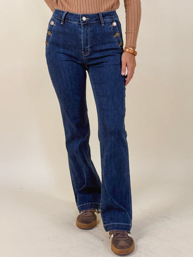 Enhance your casual fall outfits with these flare jeans. Featuring stylish button details at the side pockets, they're crafted for both comfort and...