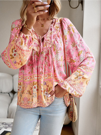 • [TRIBAL] Ema Embroidered Wide Sleeve Popover Blouse