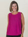 This top adds a fun twist to your wardrobe with its textured fabric and flattering fit. The sleeveless design makes it perfect for layering or wearing solo. Whether paired with jeans or a skirt, it’s your new go-to for effortless style and comfort.