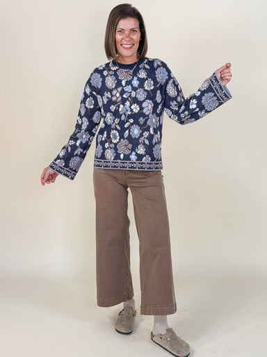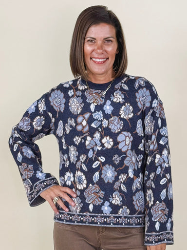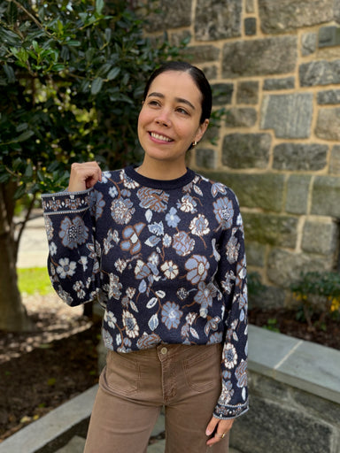 Introducing the Amy Sweater, where casual comfort meets floral elegance! With drop shoulders and placement florals, this sweater is relaxed and sty...
