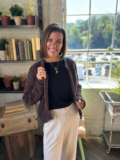 The Rocky Cardi is a cute and comfy cardigan, featuring a round neckline, long sleeves, and a relaxed fit. The ribbed edges provide a cozy fit, whi...