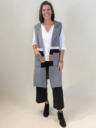 Dress up your layering game with this cardigan. Its mid-thigh length and cozy sweater knit make cold-weather styling easy. The colorblocked pattern...