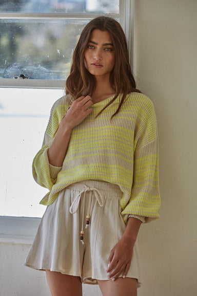 Create a casual yet chic everyday look with the Fran Top. Featuring a v-neck, poncho-style flowy fit, and a fuzzy striped knit, it's comfortable an...