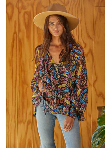 Not your average peplum top, this style is covered in fringe for a textured feel and unique look. Its front tie details and puff sleeves add a cute...