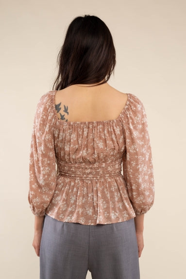 The Ivy Top features a boat neckline, long sleeves, and fitted silhouette for a flattering look. Made with textured fabric in a floral pattern, it'...