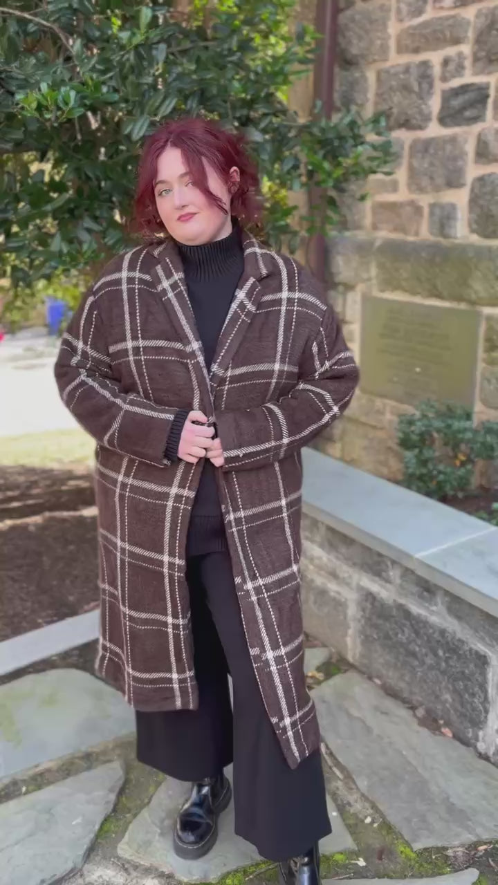 This statement coat is all about cozy sophistication. Its soft sweater knit and bold plaid pattern make even the simplest outfit look styled. With an oversized fit, wearing it feels like wrapping up in your favorite blanket.
