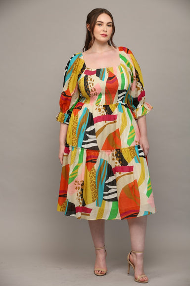 This midi dress skims the body in a fitted silhouette with just the right amount of stretch. The sleeveless mock neck and abstract floral print len...