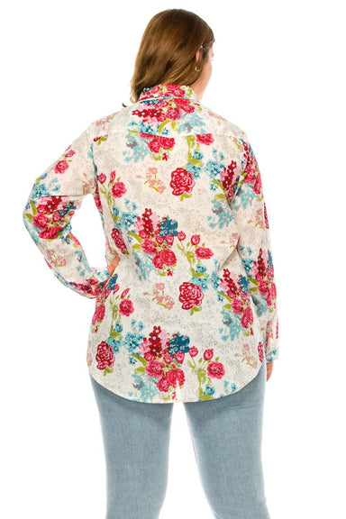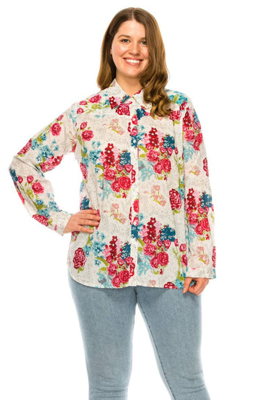 This top is a classic button-front style with a fun touch, featuring a collar and curved shirt-tail hem. The long sleeves with scrunched detailing ...