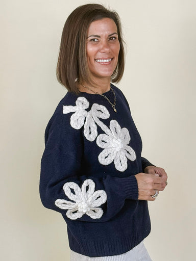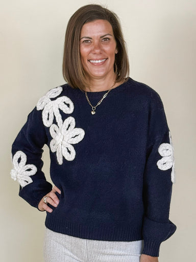This playful and artistic sweater features oversized flower appliques made of rope that add texture and charm. Designed with a relaxed silhouette, ...
