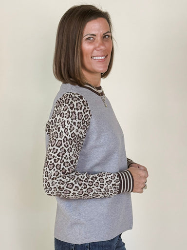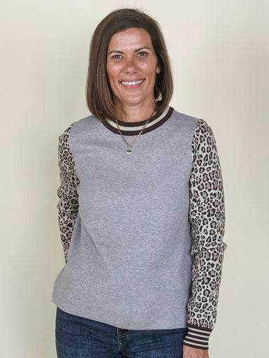 Unleash your wild side with the Laila Pullover. This piece pairs a solid-colored bodice with bold leopard print sleeves for a daring look. Contrast...