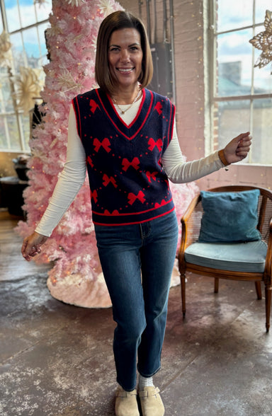 Who doesn't love a sweater vest? This style features a classic design with it's v-neck, sleeveless cut, and ribbed edges. Perfect for layering over...
