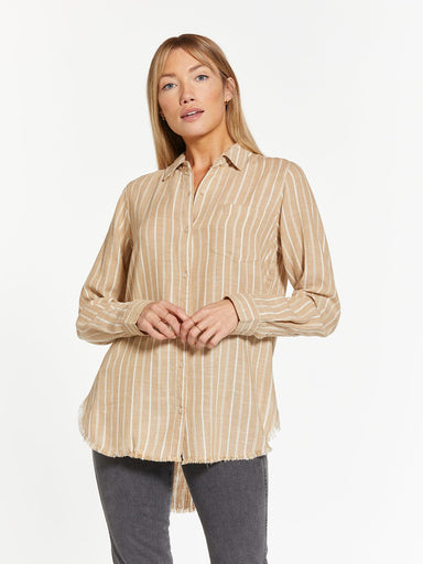 Create a casual yet chic everyday look with the Fran Top. Featuring a v-neck, poncho-style flowy fit, and a fuzzy striped knit, it's comfortable an...