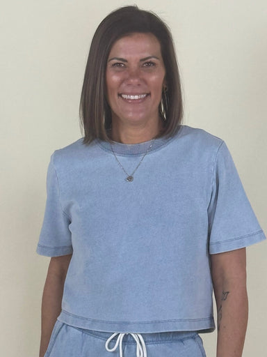This knit denim top is made of soft french terry, providing all-day comfort. It's perfect lightweight layer with a comfy fit. Make it a set with it...