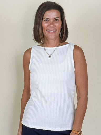 A polished staple designed for endless versatility. This sleeveless rib knit features a flattering boat neckline and soft, stretch fabric for a smo...