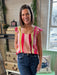 The Fallon Top is a must-have for spring and summer styling. It features a flattering scoop neck, adorable flutter sleeves, and a comfortable relaxed fit. The top's bright pattern is artistic and eye-catching, making it great for sunny days. Pair with the matching skirt for a colorful, whimsical look from head to toe.