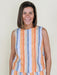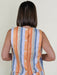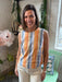 This shell top is elevated by a bold multi stripe print that adds fresh color and dimension. The back buttons create a refined finish while keeping the look effortless and versatile. Pair with the matching pants for a super cute look.