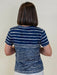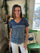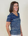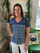 Lightweight and breathable, this t-shirt is a warm-weather essential. Its features include a v-neckline, short sleeves, and relaxed fit that offer casual comfort. The blue and white stripes create nautical vibes, making it the perfect style for summertime.