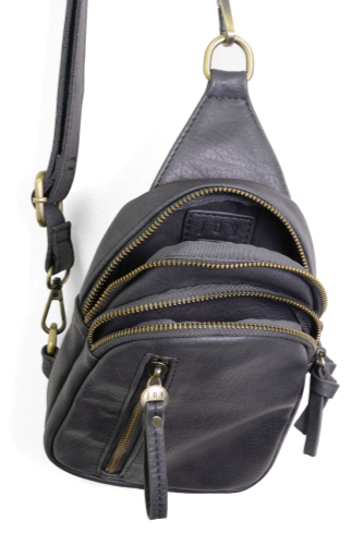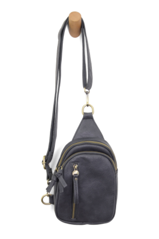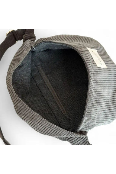 Not your typical fanny pack, this bag is meant to be worn over the shoulder or as a crossbody with its long adjustable strap in a dark heather gray...