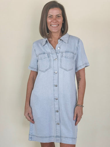 A polished, flowy shirt-dress with modern patch pockets and a button front for easy styling. Designed in 100% lyocell, this piece blends structure ...