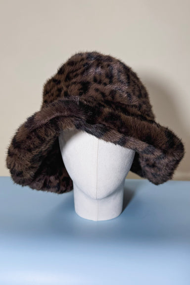 Add bold flair to your look with this faux fur leopard print bucket hat featuring a soft plush texture and wide brim. Cozy and chic, it's the perfe...