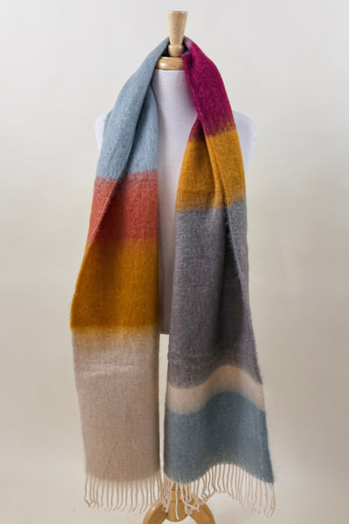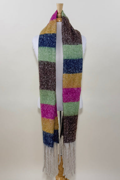 Cozy striped winter scarf designed with a soft, oversized fit and finished with fringe ends for added style. Perfect for layering during cold weath...