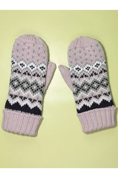 A classic cold-weather accessory, these mittens in a blush, sage, black, and white patterned knit feature ribbed cuffs and cozy fleece lining. Pair...