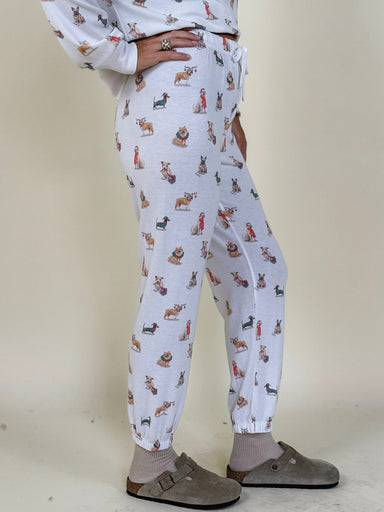 A cheerful pup print meets ultra-soft knit for lounging made cute. Made in brushed sweater knit, these joggers feature a tapered leg, drawstring wa...