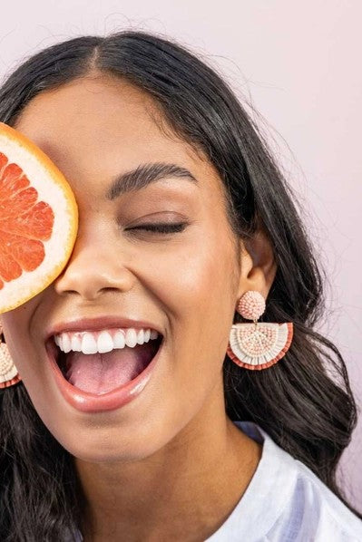 Josephine Grapefruit Raffia Drop Earrings - Blush — Sweet Elizabeth Jane