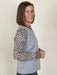 Unleash your wild side with the Laila Pullover. This piece pairs a solid-colored bodice with bold leopard print sleeves for a daring look. Contrast stripes frame the crew neckline and cuffs, adding structure and versatility to your style. Perfect for those ready to make a statement without going all-in on animal print.