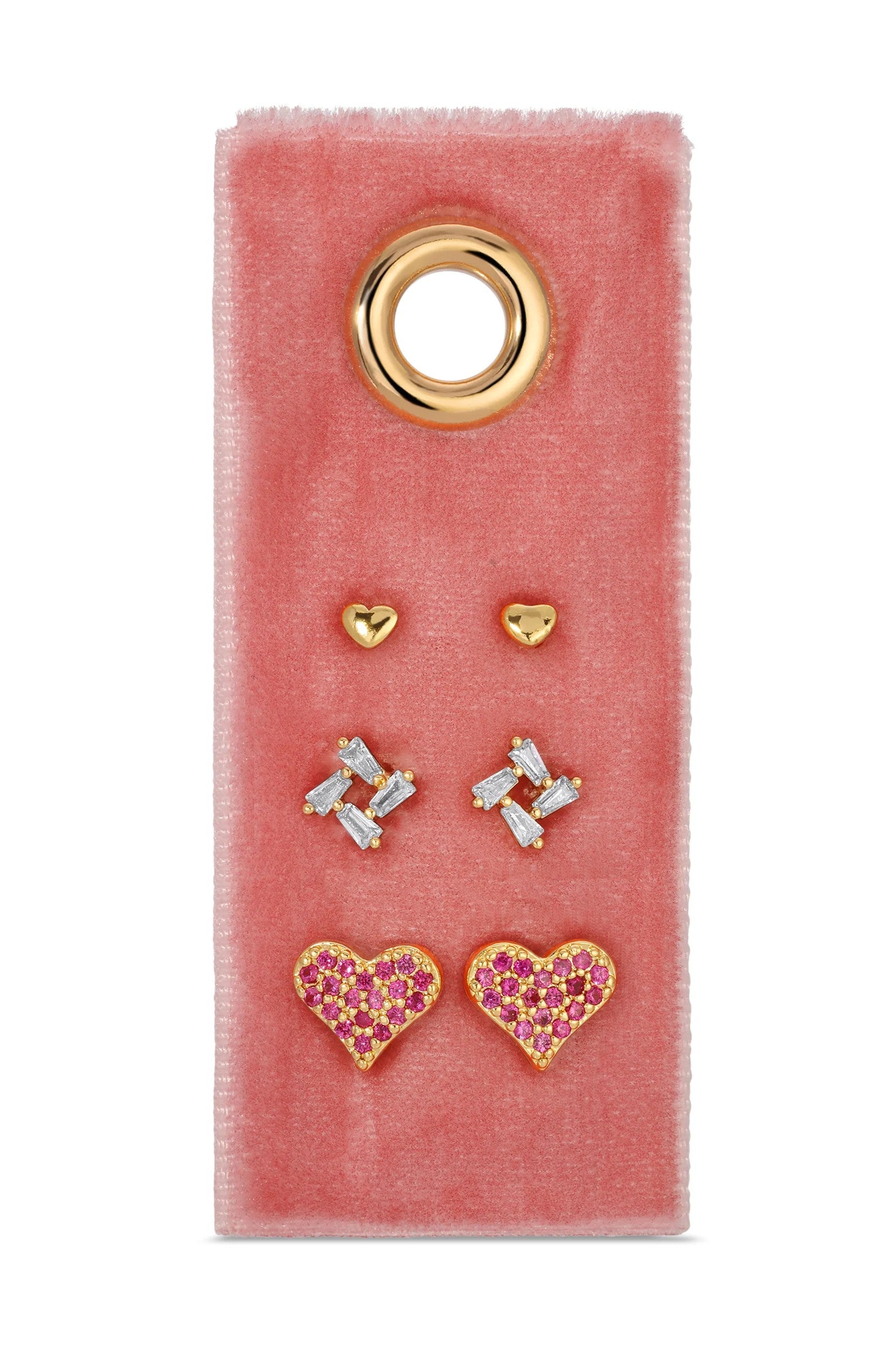 Pink Pave Heart Velvet Stud Earrings, Set of 3 — Sweet Elizabeth Jane